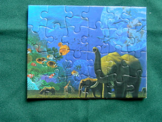 This girl likes animals so I did a puzzle and glued it and them attached it to a board to make a handmade postcard. This is going to Maryland.